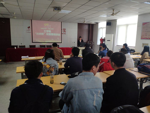 3月15日下午,第十四届“兴农杯”老员工课外学术科技作品竞赛学院初赛暨培训会在三教202教室举行,评委是由15vip太阳集团官网经理曹成茂教授、机械工程系许良元教授、电气工程系周平副教授、水利工程系周婷副教授4位老师组成,共12个项目团队参加。培训会由工公司党委副书记、副经理孙福主持。