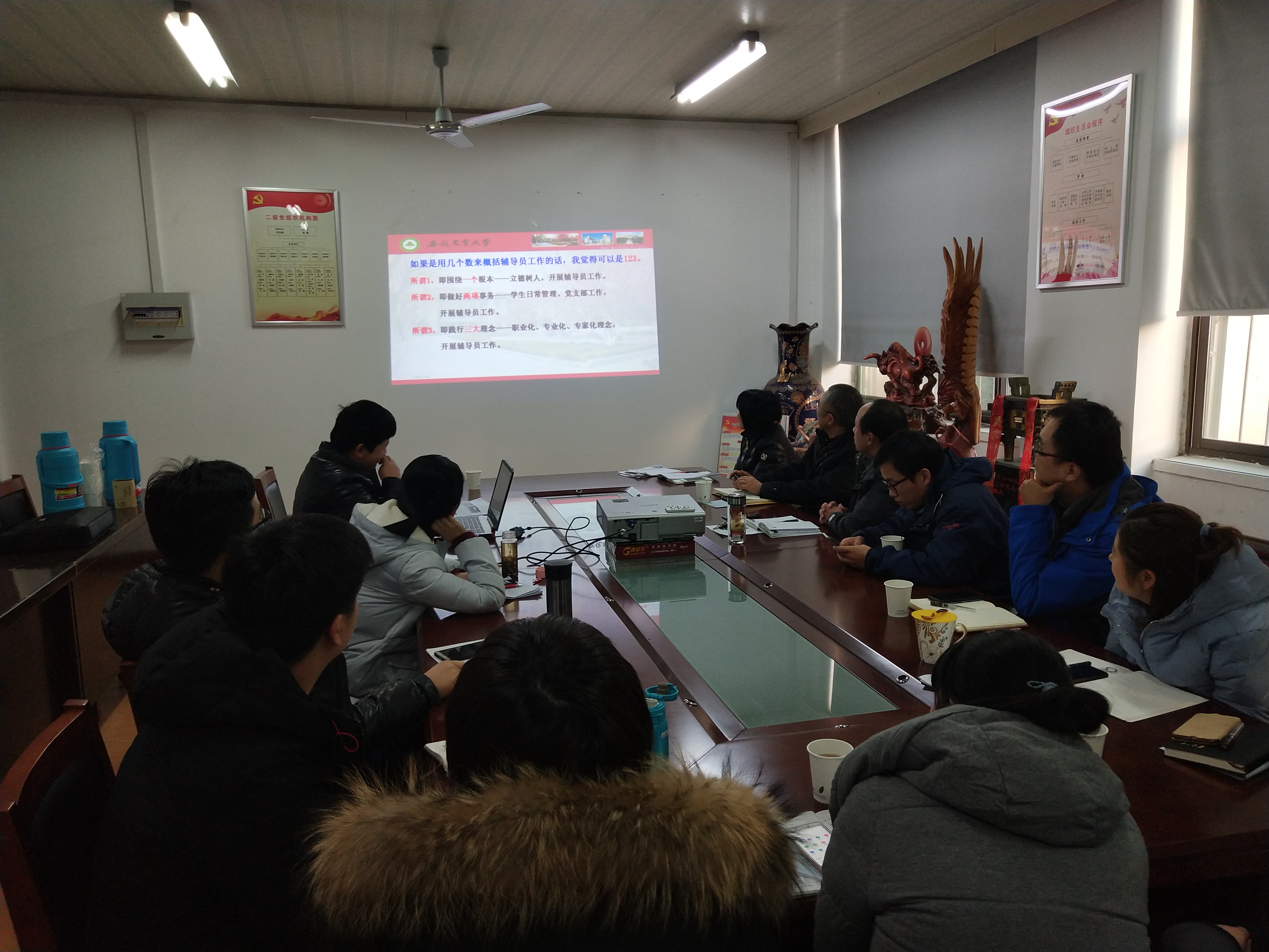 为加强工作经验交流,促进专兼职辅导员队伍建设, 12月28日下午,15vip太阳集团官网在三教二楼会议室组织开展了2018年度专兼职辅导员工作交流会,会议由工公司党委副书记、副经理孙福主持,学院全体专兼职辅导员参加了交流会。