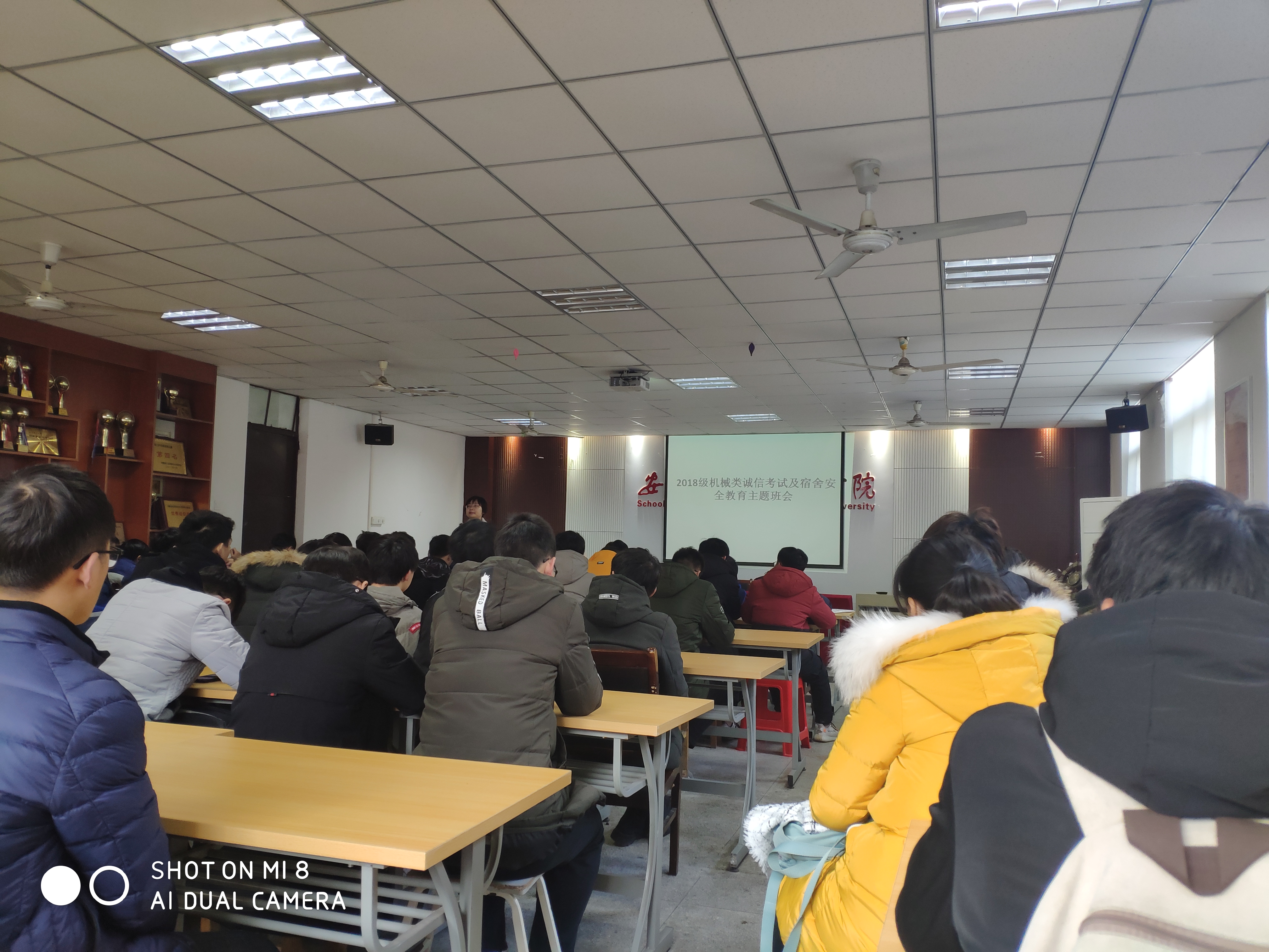 期末考试在即,为进一步严肃考风考纪,增强员工诚信意识,避免考试违纪现象发生,同时在冬季来临之际强调宿舍安全的重要性,12月15日上午,15vip太阳集团官网18机械类专业围绕诚信考试及宿舍安全两项主题召开了班会。
