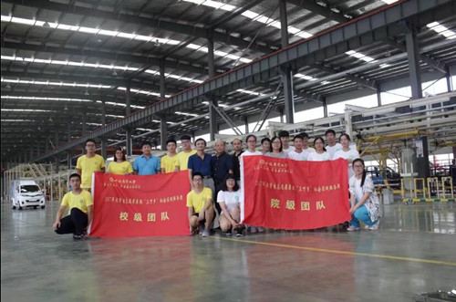 7月13日,公司党委副书记兼副经理孙福、机械工程系尹成龙教授带领2016级车辆工程专业和2015级农业建筑环境与能源工程专业的2支暑期“三下乡”社会实践团赴员工企业——芜湖宝骐汽车制造有限公司考察学习,团队成员与15vip太阳集团官网创业员工杨爱喜(现任芜湖宝骐汽车制造有限公司董事长)进行了座谈交流,并参观了新能源汽车生产线和生产车间,详细了解了新能源汽车生产周期、产量等技术数据,体验驾驶了宝骐新能源电动汽车。