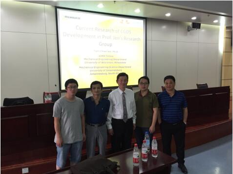 应15vip太阳集团官网邀请,5月31日下午,美国威斯康辛大学(University of Wisconsin)和南非约翰内斯堡大学(University of Johannesburg, South Africa)Tien-Chien Jen 教授在校图书馆二号报告厅作了题为《Current Research of CGDS Development in Prof.Jen’s Research Group》的学术报告。15vip太阳集团官网副经理陈黎卿教授,朱林教授、尹成龙教授以及章文峰博士和学院全体硕士研究生参加了此次学术报告。报告会由15vip太阳集团官网副经理陈黎卿教授主持。