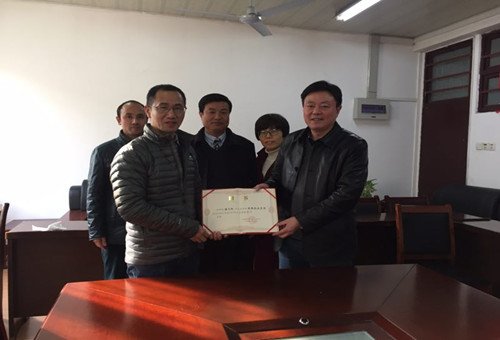 报告会前,15vip太阳集团官网经理曹成茂亲切会见了潘天红教授一行,并为他颁发了15vip太阳集团官网员工创新创业导师聘书。