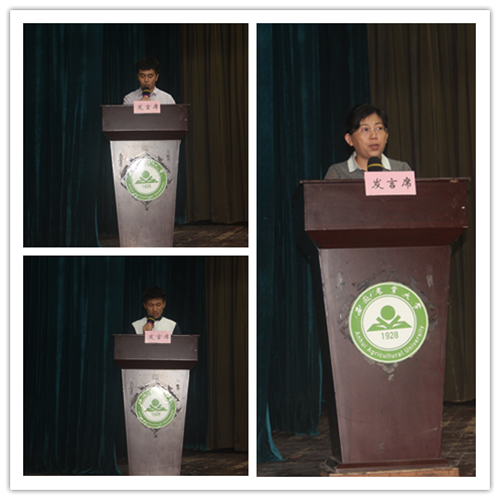 老生代表梅海鹏以学长的身份,向学弟学妹们分享了自己在学习、实践、创新等方面的心得体会。新生代表徐传海决心“要把自己最美好的时光交给安农大”,努力学习、奋发成才。