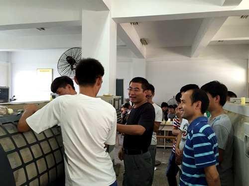 院领导一行来到车间,和同学们亲切交流,询问他们对于此次实习的感受。姚兴贵同志在观摩同学们的实际操作演练后,对同学们进行了鼓励和表扬,他强调,同学们要珍惜实习机会,充分实践,多反思、多总结,不断提高自己,希望同学们要积极配合教师的教学和管理,确保实习取得良好效果。面对炎热高温天气,孙福同志强调同学们一定要注意防暑降温,确保安全,并努力克服困难、完成实习任务。学院一贯重视员工暑期金工实习,这不仅培养员工在车工、铣工、钳工、刨工、焊接等实践方面的能力,也是将理论应用于实践的重要教学环节。