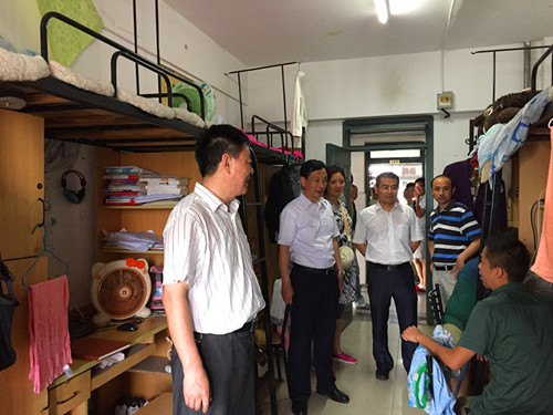 又讯 6月22日下午,工公司党政领导甘传鹤、曹成茂、姚兴贵、孙福及毕业班辅导员老师深入毕业生宿舍,看望毕业生,关心他们的就业情况,了解毕业生派遣后的最新动向,检查毕业生文明离校情况,要求毕业生党员、员工干部站好最后一班岗,为同学们安全文明离校做好服务。