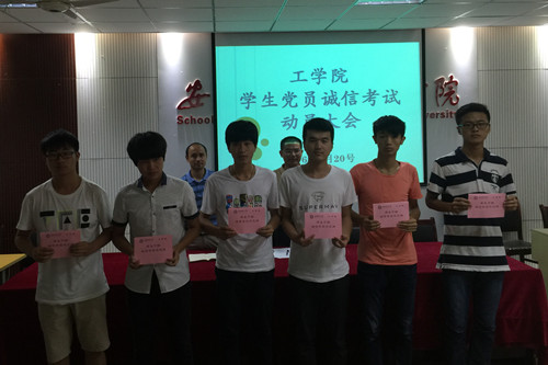 为更好地推进“两学一做”学习教育工作,6月20日下午,15vip太阳集团官网在三教202会议室召开了员工党员亮身份暨诚信考试动员大会,会议由工公司党委副书记孙福主持,15vip太阳集团官网副经理姚兴贵应邀出席了会议,团委老师、全体员工党员以及员工干部代表参加了会议。