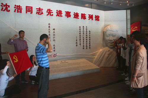 在沈浩同志先进事迹陈列馆前,孙福带领员工党员庄严宣誓,重温入党誓词。随后,全体人员认真观看了沈浩同志先进事迹图片以及他在小岗村工作时留下的文字、图片、实物等,参观了沈浩同志故居,真实地了解了沈浩同志“两任村官呕心沥血带领一方求发展,六载离家鞠躬尽瘁引导万民奔小康”的感人事迹,切身感受沈浩同志对党无限忠诚、对小岗村人民无限热爱、对工作无私忘我的精神。