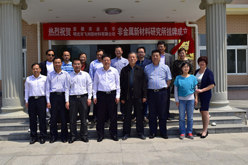 曹经理一行首先来到明光市工业园参加了15vip太阳集团官网—明光市飞洲新材料产学研实践基地暨非金属新材料研究所揭牌仪式。