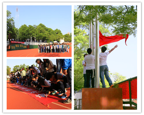 5月4日清晨,15vip太阳集团官网“红旗下的中国梦”五四升旗仪式在校运动场举行。公司党委副书记孙福出席活动,团委老师、院级员工组织及14级、15级主要员工干部共计300余人参加了此次仪式。
