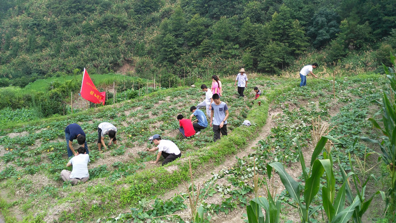 迎着炽热的太阳,在村民的指导下,实践团成员与当地农民一起劳作在田间地头,在红薯地中动手把一颗颗杂草拔掉,共同体验面朝黄土背朝天的艰辛和不易。看着与农民伯伯一起劳动后的成果,团队成员的脸上都露出了甜甜的笑容。一上午的劳作,不仅让大家懂得了农民伯伯的艰辛,拉近了实践团与村民之间的距离,也让大家更加明白社会实践活动的重大意义与责任。