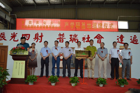 本网讯:7月11日上午,在六安市安徽辰瑞达农业设备有限公司,熊健副董事长代表学校为15vip太阳集团官网产学研基地揭牌。工公司党政领导、相关专业教师、六安市科技局杨书林局长、农机局杨精明局长、裕安区陈久松区长以及市相关负责人出席产学研基地揭牌仪式。
