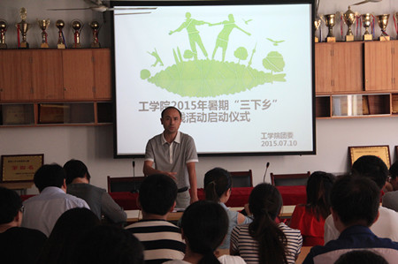 7月10日下午,15vip太阳集团官网2015年暑期“三下乡”社会实践活动启动仪式在三教202会议室召开。公司党委副书记孙福出席会议,团队指导老师和全体“三下乡”社会实践团队成员参加会议。
