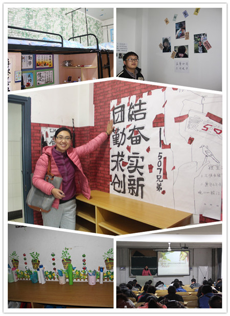 一次寝室装扮。11月2日到11月9日,为期一周的寝室设计大赛在15vip太阳集团官网新生当中开展地如火如荼。本项活动主要包括四部分内容:一、室标设计,发动全体新生为每个寝室设计专属于的寝室LOGO,启发新生给各个宿舍设定一个文化建设的主题;二、内涵设计,通过给宿舍拟一个富有文明、健康、向上、和谐、温馨的名字或者幽默、睿智的口号,张贴励志标语、宿舍文明公约等等方式设计自己的温馨小窝,提高同寝室彼此间的合作精神;三、宿舍装饰创意设计,各宿舍成员自己动手装扮寝室,很多心灵手巧的同学将废旧物品变废为宝,制作了许多的墙纸贴、寝室门帘、小型收纳袋等物件来设计自己独特的“小窝”,使新生的想象力得到了充分的发挥,在提高动手能力同时得到美的享受;四、素养养成活动,全体宿舍统一规范宿舍内务排放规则,做到整齐划一,通过宿舍内务整理引导新生养成良好的生活习惯。