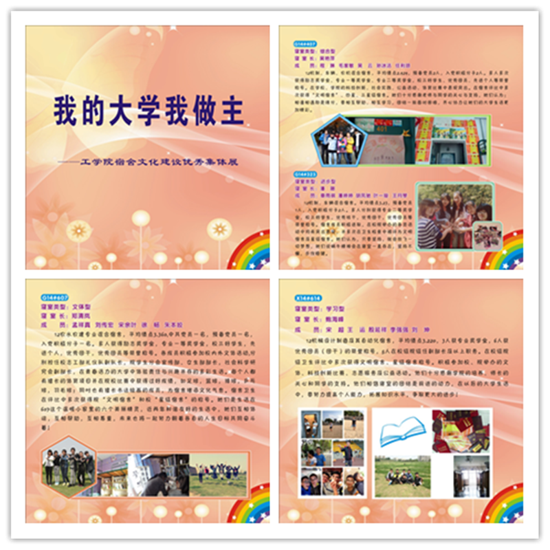 1.构建了新生适应性教育新载体,营造了浓厚的优良育人环境。近年来,学院每年级新生参加寝室文化设计比赛、室标比赛、包饺子大赛等活动的热情逐年升温,参与宿舍数、人数逐年增多,新生层面覆盖面已达100%,有效地充实了新生从高中进入大学后的新生活,更加促进了员工对本学院、本专业、本寝室的热爱,学院上下已然形成了浓厚的宿舍文化氛围,为员工的大学学习、生活奠定了温馨和谐、积极向上的育人环境。