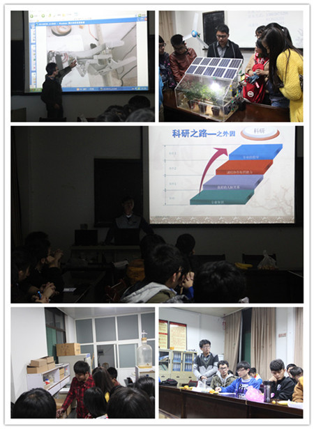 学长亲身传授,教学地如何做科研。交流会上,学长均亮出自己的科研作品,现场为大家解说作品的研发过程,针对立项所需要的专业知识储备和课程学习做了重点讲述。交流会外,11农建成潇伟学长等带领学弟学妹参观了实验室,现场向大家演示经过自身改进的实验装备或模型的运行原理;11机制袁小刚学长和龚志文学长则利用周末休息时间为学弟学妹集体安装了模型设计常用软件,并教大家使用方法。学长们还向学弟学妹介绍学院科研成果丰富的教授、指导老师,鼓励同学们主动和老师们沟通交流,学习先进科研成果,拓宽科研思维和视野。学弟们就自己关注、疑惑的方面向学长提出疑问,学长们均耐心一一解答。