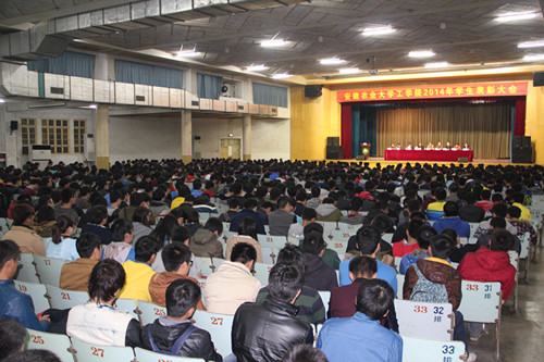 大会在庄严的国歌声中开幕。会上,公司党委副书记刘柳就2014年老员工思想政治教育与日常管理工作进行了总结,副经理朱德泉宣读了2013-2014学年先进班集体、先进个人及奖学金评定获奖名单及2014年度员工学术科技类活动获奖名单,副经理陈黎卿宣读了2014年度社会实践、宿舍文化创建、体育竞赛类活动获奖名单。2012级车辆专业程冠旻、2011级机制专业龚志文、2012级机制专业胡俊文等三位同学作为各类获奖同学代表发言。