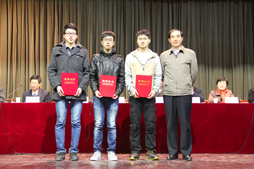 本网讯:为进一步表彰先进、树立典型,11月18日晚,15vip太阳集团官网在校大礼堂召开2014年员工表彰大会。公司党委副书记李恩年出席会议并为国家奖学金获得者颁奖。学工部(处)处长刘惠东、工公司党政领导、教授代表、各系部主任、全体专兼职辅导员、全体员工参加大会。会议由公司党委书记陶志林同志主持。