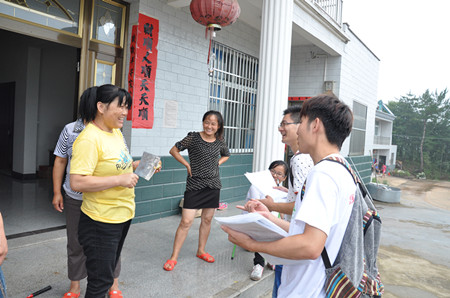 活动初期,为了更好的了解当地实际情况,我们首先进行了走家串户的农业生产生活调查。通过交流我们了解到当地农作物以茶叶、水稻、玉米为主,其中茶叶种植为最主要经济来源,由于当地从事农业生产效益过低,不能满足生活需要,青壮年大多外出务工,老人留守家中从事农业生产。对于当地应如何发展我们向村民征集了意见,他们均表示,当地交通过于闭塞,希望政府能够积极改善。同时对于当地丰富的旅游资源能够大力开发,改善当地经济结构,实现创收增收,摆脱落后现状。