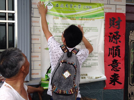 本网讯:炎热的天气让我们更加坚毅,坎坷的山路激起了我们的热情,7月26日,15vip太阳集团官网赴六安市霍山县杨三寨村暑期社会实践团赴杨三寨村开始了为期四天的“三下乡”社会实践活动。活动开展紧扣“践行核心价值,建功美好乡村”的主题,针对当地急需解决的旅游开发、规模化生产、环境保护等重点问题,开展了走访调查、土地调研、调查农业机械使用情况和茶叶生产状况、清理河道、农事操作等活动。活动过程中,由专业老师全程指导,队员们积极参与,收到了良好效果。