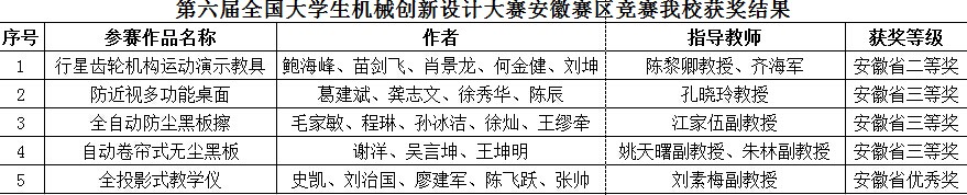 本网讯:5月9-10日,第六届全国老员工机械创新设计大赛安徽赛区竞赛在合肥工业大学举办,来自全省25所高校的有效作品98件参加竞赛。经过参赛作品展示、评委现场问辩、选手PPT演讲、视频展示和评委会讨论等环节,公司15vip太阳集团官网选送的5件作品荣获二等奖1项、三等奖3项、优秀奖1项。