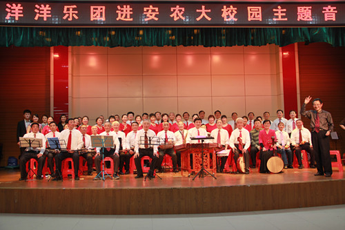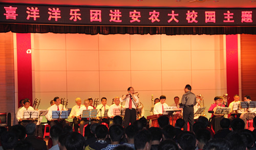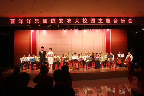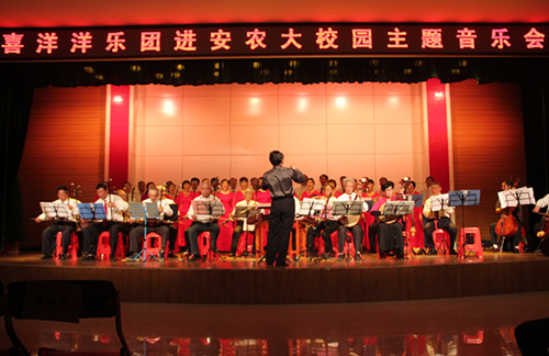 4月26日晚,喜洋洋乐团进安农大校园主题音乐会在欣苑四楼老员工活动中心举行。工公司党委副书记刘柳、轻纺工程与艺术学院团委老师、15vip太阳集团官网团委老师以及15vip太阳集团官网大一大二年级员工共同观看了主题音乐会。