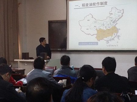 吴崇友研究员从稻麦油轮作制度、稻麦油生产机械化现状、科技创新的方向和目标、未来发展的思考四个方面对当前国内稻麦油外轮作区的机械化发展现状、存在的问题及发展趋势进行了详细分析;从作物-机器系统的角度,对水稻、小麦、油菜三大主要作物现阶段生产装备基本情况、机具存在的问题、机具的性能评价、功能评价和可靠性评价进行剖析,并从研究目标、解决途径、国内现状、国外情况与存在问题等多角度,结合南京农业机械化研究所多年的科研实例,对相应的作物生产全过程装备给出了科技创新的方向和发展目标;提出从品种、栽培和机械三者相互协调来解决农业生产机械化问题,轮作区的机械化装备的通用性和专用型要适当兼顾。报告具有非常好的政策指导性和学术前瞻性,为我省及长江中下游地区轮作区的主要作物生产机械化技术的研究与发展提供了很好的思路和指导。