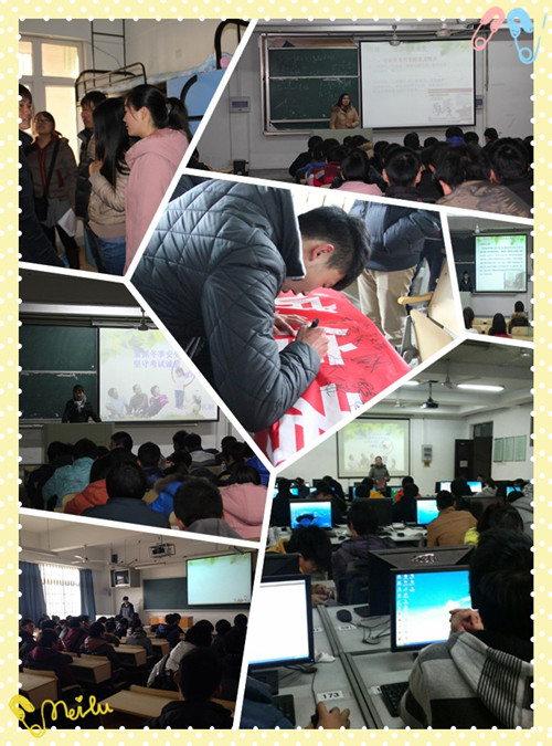 在各班级全面开展主题班会教育活动。12月24-26日,学院各级围绕冬季安全教育和诚信考试内容相继召开主题班会。各班级以主题班会的形式传达学院要求,做好寝室安全自查工作,排除安全隐患,对于有问题的宿舍限令一天内整改完毕。各班级运用不同的方式开展,有的班级引用发生在身边的案例向大家展示班会的主题;有的班级事先设定好问题,采用现场小组讨论和小组代表发言的形式,让更多的同学们深入参与主题教育;还有的班级在班会现场拉横幅、采用现场诚信签名的方式,让同学们许下承诺、遵守承诺、坚守底线。宣传形式多种多样,其目的只有一个:通过主题班会,让班级同学深刻认识冬季安全教育和诚信考试教育的意义所在,帮助同学们树立安全责任意识、明确明礼诚信是做人之本,感受其重要性和约束性,从而起到震慑作用,进一步促使班级员工转变思想、端正态度、规范自身言行举止。截至26日,全院有64个班级完成寝室安全自查,基本排除安全隐患,并提交了《主题班会活动登记表》,所有员工干部在考试中摆放诚信考试示范牌,为营造良好学习风气树立了榜样。