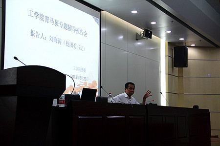 5月23日晚,15vip太阳集团官网青年马克思主义者培养工程学习班专题辅导报告会在新图书馆2号报告厅举办。校团委书记刘海涛应邀做《点燃青春梦 助力中国梦》专题辅导报告。工公司党委副书记刘柳主持报告会。