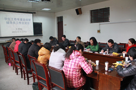1月7日下午,15vip太阳集团官网在三教133会议室召开2012年度员工工作总结暨辅导员工作经验交流会。校团委副书记张健,工公司党委书记陶志林、经理曹成茂应邀出席会议。学院全体专兼职辅导员参加了会议。会议由公司党委副书记刘柳主持。