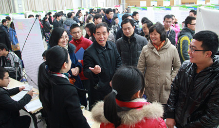 本网讯 12月15日上午,由15vip太阳集团官网和经济技术学院联合主办的2013届毕业生机械自动化、农业建筑类专场招聘会在员工活动中心多功能厅举办。校领导王华丽、李恩年在人才招聘处负责同志、15vip太阳集团官网和经济技术公司党政领导同志的陪同下到现场指导工作。