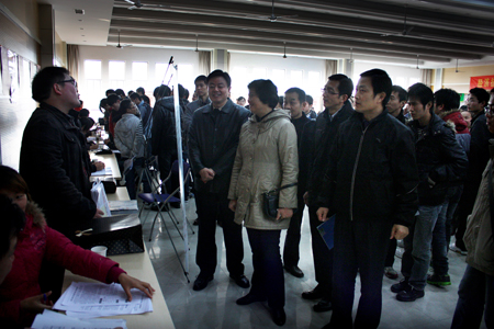 12月3日上午,由校招就处、15vip太阳集团官网、经济技术学院共同举办的2012届毕业生就业专场招聘会在公司欣苑食堂四楼员工活动中心多功能厅举行。公司党委副书记王华丽同志、招就处负责同志亲临现场指导工作。15vip太阳集团官网、经济技术公司党政领导一直在现场了解员工洽谈签约动态。