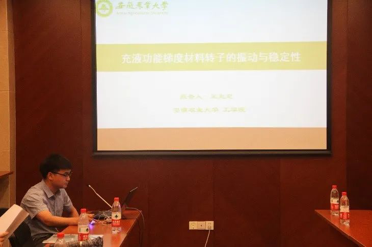 王光定以“充液功能梯度材料转子的振动与稳定性”为题,围绕“充液FGM转子系统自由振动精确频率方程”、“流-固耦合作用下系统的稳定性”、“系统振动和稳定性的关键影响因素”三个问题,汇报了最新研究进展,并与参会同行就学科前言问题进行了交流互动。