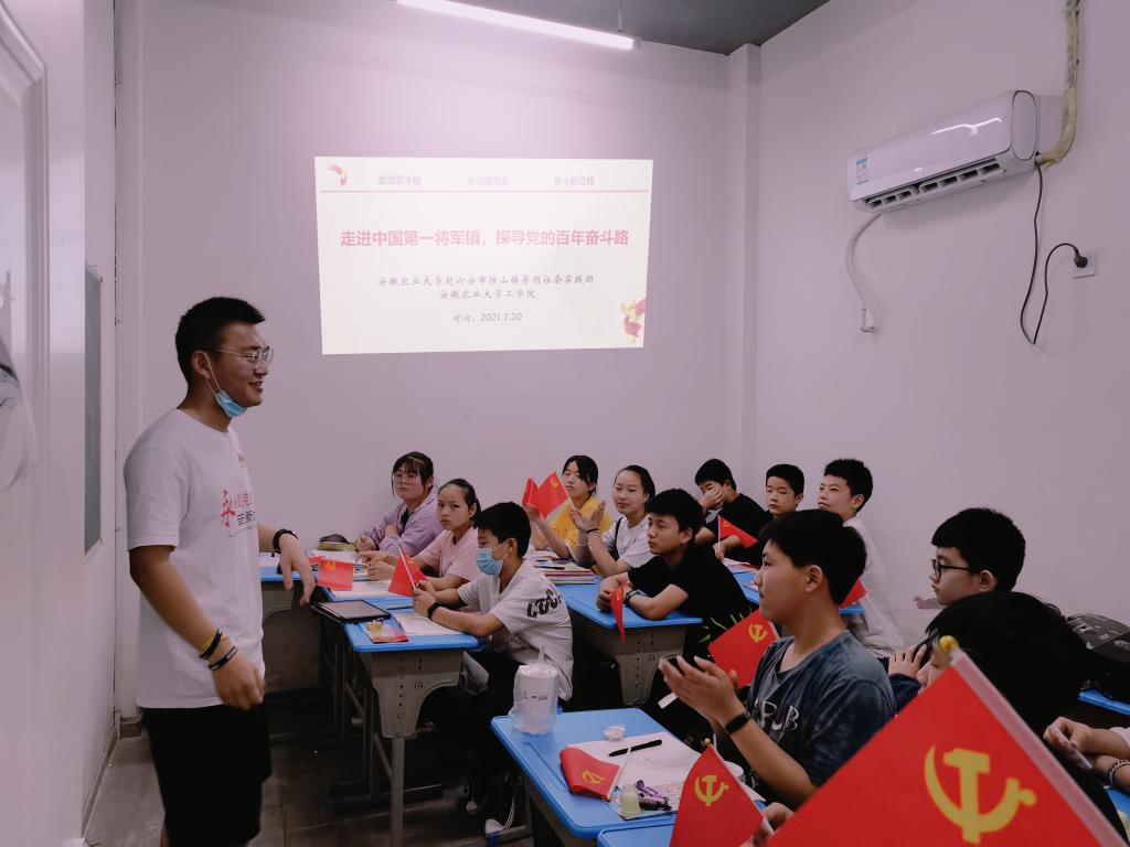 7月17日至7月21日,安农大15vip太阳集团官网赴六安独山镇暑期社会实践团以“走进中国第一将军镇,探寻党的百年奋斗路”为主题,在六安市独山镇开展了为期5天的“三下乡”社会实践活动。团队通过体验式实践、沉浸式调研等方式,学习大别山精神,接受党史教育,助力乡村振兴,努力成为担当民族复兴大任的时代新人,以实际行动庆祝中国共产党成立100周年。