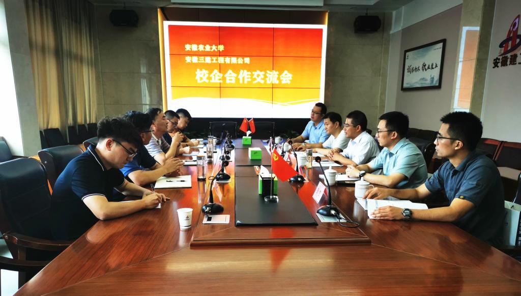 交流会期间李跃进介绍了安徽三建工程有限公司的企业概况、资质、业务板块、科技创新等情况并观看了公司的宣传片,姚兴贵致辞中介绍了学校和学院的基本情况,重点介绍了学院在人才培养方面的优势及已取得相关的科研成果。