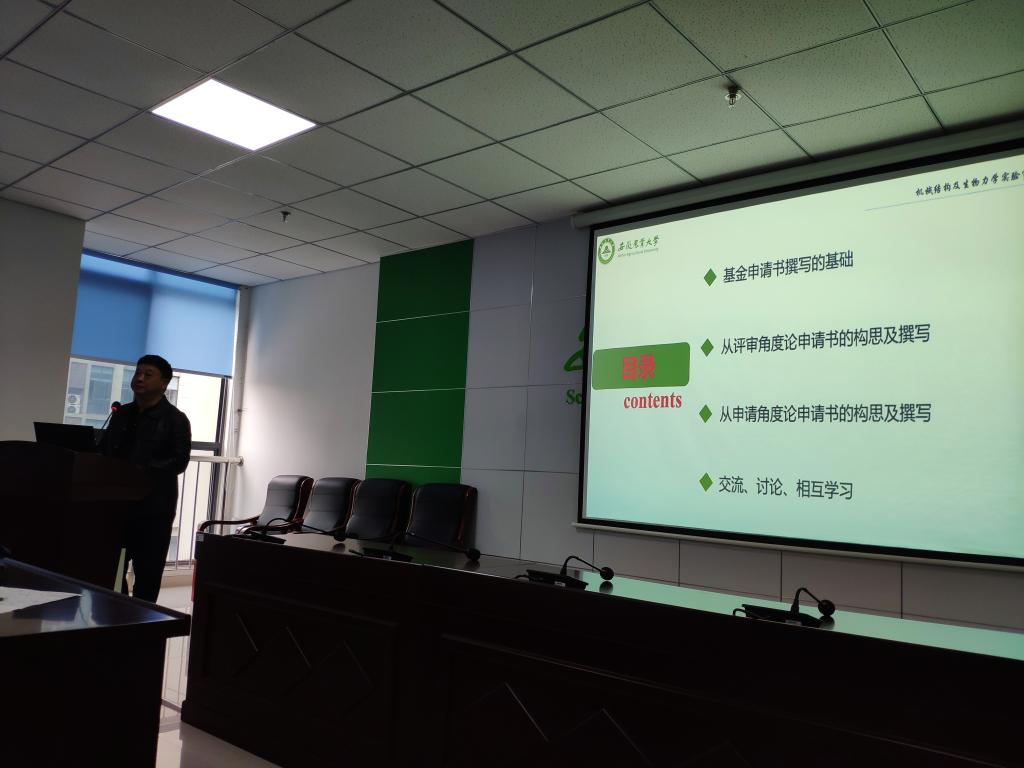 朱林教授研究兴趣集中在微纳尺度的农药固液叶面流动和失稳、多场耦合下的机械部件行为演化和生物力学等领域,学术造诣深厚、科研成果丰硕,今年又再次喜获国家自然科学基金面上项目资助。他从“为什么要申请国家基金、拿什么去申请国家基金”两个问题引发青年教师的思考,从“为什么要做、怎么做、为什么给你做”三个问题出发,深入而务实的与大家分享基金写作的经验和教训。报告结束,大家对朱林教授报以热烈的掌声,多位青年老师还就基金申请中“创新点和科学问题的凝练、研究内容和方案的撰写、研究基础的选择、研究团队的建立”等问题与朱林教授进行了进一步的交流。