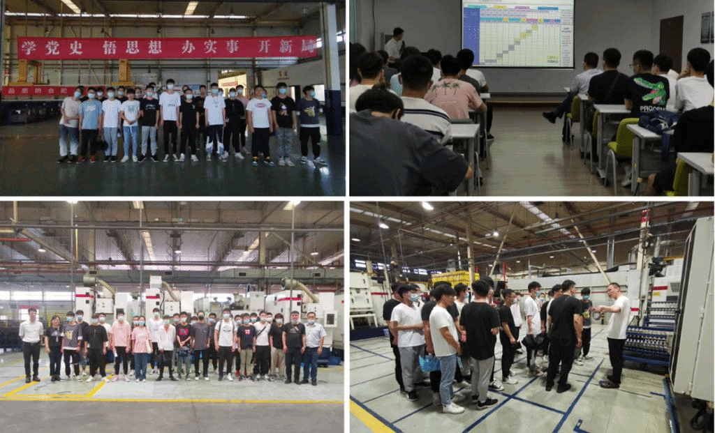 实践教学首先开展了理论授课,分别由人力资源部门负责企业管理培训、安环设备部负责安全培训、生产部门负责培训企业质量管理知识和工程伦理等、研发与试验中心负责培训产品定型过程及其管理、产品研究所负责培训研发流程和生产成品核算。完成理论教学后,19机制员工分为4组,先后在装配、机加、冲焊、齿轮四大分厂开展实践活动,全面了解机械装备的加工生产过程。最后组织员工参观产品研发中心,了解产品的研发过程与产品的样机试验定型过程。