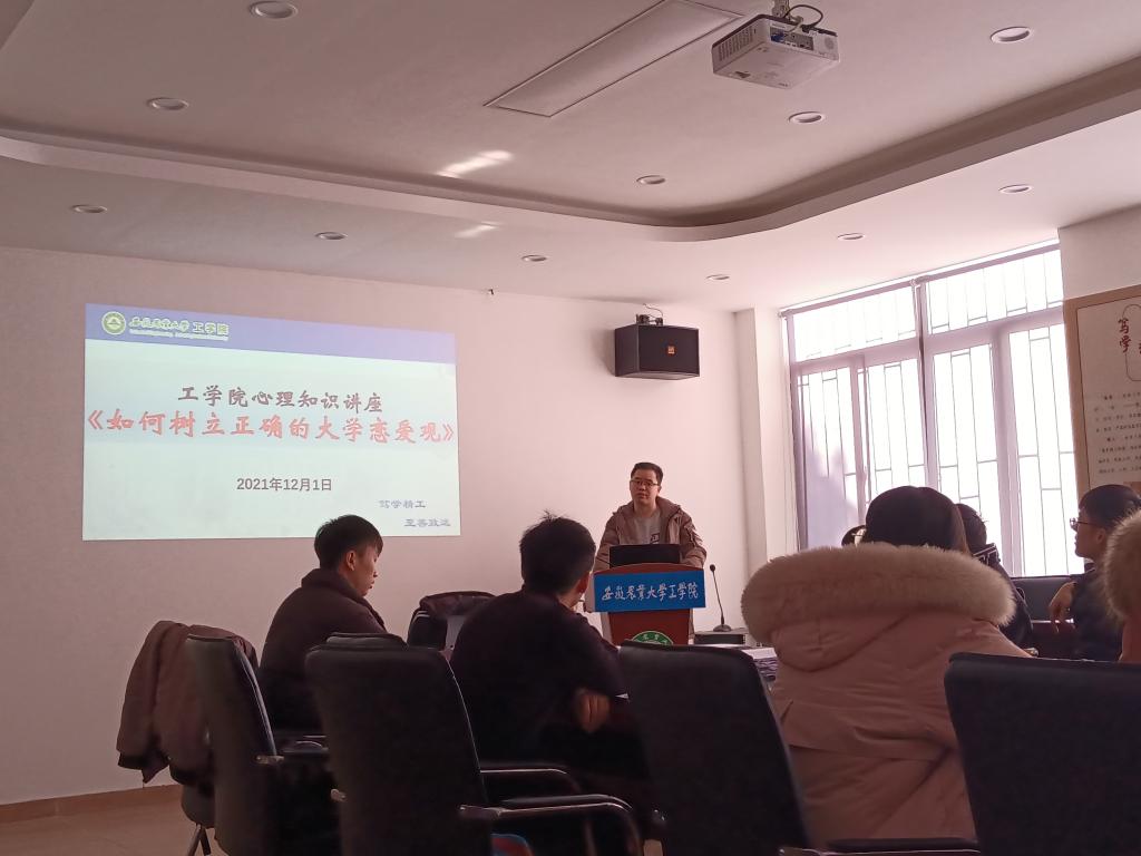 15vip太阳集团官网于12月1日上午在中间会议室作了题为《如何树立正确的大学恋爱观》专题讲座。公司心理负责孙亮亮老师担任主讲,2021级心理委员和寝室联络员参加会议。