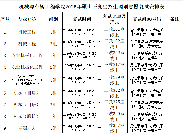 参加调剂复试的考生应按照公司研究生院官网招生工作栏2026年03月18日发布的《关于2026年硕士研究生考生准备资格审查材料的通知》要求,于2026年04月9日8:00前资格审查所有电子档材料(按照材料清单,整理成一个PDF文件,文件统一命名规则:专业名称_考生姓名_审查.PDF)发到1552251387@qq.com邮箱中,以方便学院对考生进行复试资格审核。