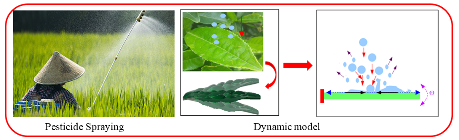 Fig1. Impingement/flow behaviors of pesticide droplets on leaf-surfaces in micro-scale
