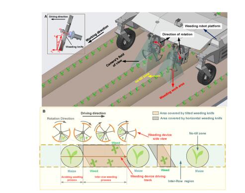 在前期研究的基础上,基于损伤施药的创新除草理念,设计开发了一种智能行内除草机器人来评估该方法的性能。在对照实验中,提出的创新除草方法明显优于纯机械除草的除草率;其最大贡献是减少机械除草操作次数,从而降低能源消耗和对环境的损害。此外,与化学除草方法相比,所提出的方法在最小化除草剂使用的同时,实现了良好的除草效果,从而减少了作物损害、杂草抗药性和环境污染。在最终的玉米试验区,机器人以2.0公里/小时的速度行驶,并以每秒60帧的传输效率运行,机器人实现了90.0%的除草率和1.9%的伤苗率;在小白菜试验区表现更好,除草率达到94.5%,作物损害率为0.8%。同时,该方法仅使用传统化学除草防控方法所需除草剂的15.3%。因此,损伤施药行内除草机器人的除草、环保性能优于传统除草装备。