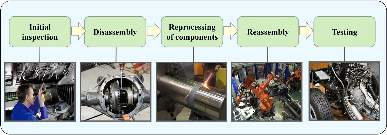 再制造是一种可持续的生产方式,其目的是将报废的产品通过拆解、修复、再组装等过程,使其达到甚至超越新品的性能和质量(如图2所示)。然而,云再制造系统面临着复杂的任务调度和资源分配问题,特别是在任务具有多个前置关系的情况下,传统算法无法有效地解决这些挑战。为此,研究团队提出了一种改进的鲸鱼优化算法(Improved Whale Optimization Algorithm, IWOA),通过自适应加权和二次插值技术的结合,使其能够有效应对云再制造系统中的多阶段整合调度问题。
