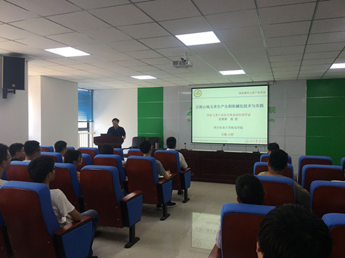 张黎骅教授的报告主要围绕西南丘陵地区玉米生产全程机械化技术的概述、实践、影响因素以及思考四个方面展开,主要阐述西南丘陵地区玉米机械化作业过程中整地、播种、田管、收获、干燥储存五个环节,实现高产、高效、优质、安全、生态的玉米全程机械化作业。张教授的报告内容丰富,深入浅出,获得到场师生的一阵阵掌声。最后,在提问环节,张黎骅教授就研究课题与公司师生进行了互动交流,对大家提出的相关技术问题进行了详细解答。