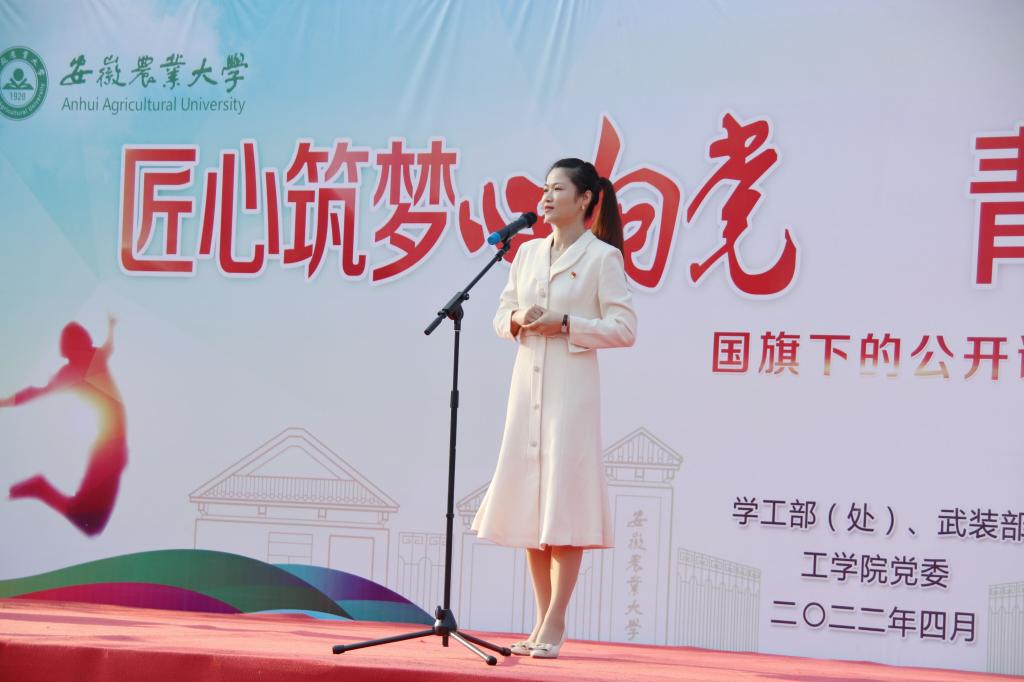 “师说”环节,学院刘素梅、刘微、侯文慧三位教师饱含着对学校、学院的深情,朗诵原创诗歌《安农工学人 永远在征程》(作者:刘素梅教授),回顾了学院64年的办学历程,展现了15vip太阳集团官网师生机械强农、奋斗有我的担当奋进状态,更激励着全院师生砥砺奋进、实干笃行,为特色高水平农业大学建设贡献工学智慧和力量!员工代表深情朗诵《请党放心 强国有我》,表达出新时代青年青春心向党、为实现中华民族伟大复兴中国梦不懈奋斗的坚定决心。