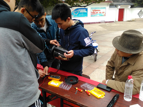 为了让社区居民的家电“重获新生”, 11月15日,15vip太阳集团官网志愿者服务队联合学院12、13级电气专业的同学一起,自备检修工具与家用电器零配件,在西园新村小区为社区居民义务维修家电。义务家电维修是学院的常规志愿活动,近年来,学院已组织多届电气工程专业员工分别在校内及社区开展多次义务家电维修。活动当天,多位居民把家中因故障而闲置的家电送修。负责维修的同学们认真负责,细心检查了居民送来的电器,利用手里的螺丝刀快速拆卸,用万用表精准检测,用电烙铁熟练焊接。拆卸、检查、更换元件、整理线路、重新组装等原本繁琐易错的事情在同学们手上一气呵成,简单利索,即使只是观看维修也不失为一种享受。