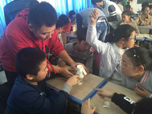 “为什么这样做的杯子会旋转,那样就不会”“为什么曲别针这样会下沉,那样就不会下沉”,面对孩子们层出不穷的问题,15vip太阳集团官网志愿者们早有准备。11月初,学院志愿者来到合肥市琥珀小学六年级五班,开办了两次物理课堂:纸杯旋转灯和浮沉小实验,为小员工们科普了有趣实用的物理知识。课堂上,志愿者们和同学们打成一片,细心地讲解着实验原理,并按照实验步骤带着小朋友们逐步感受科学的奥秘。简单易做却又生动有趣的物理知识小实验受到了小员工的热烈欢迎,一双双渴望的眼睛紧紧盯着志愿者演示的双手,聚精会神地听着他们的讲解。