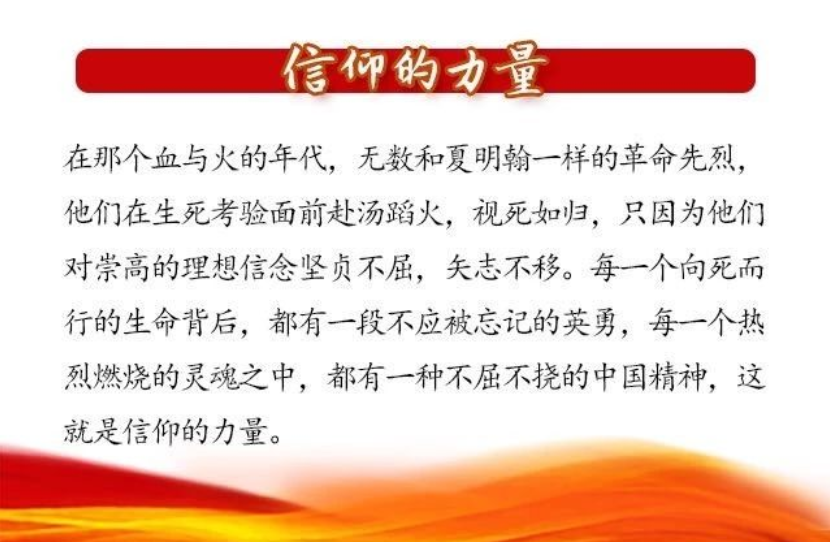 1900年,夏明翰出生于湖南省衡阳县一户豪绅家庭,他把救民出水火作为执着的追求把共产主义当作毕生的信仰,用自己短暂的28个春秋向我们诠释了信仰的伟大力量。