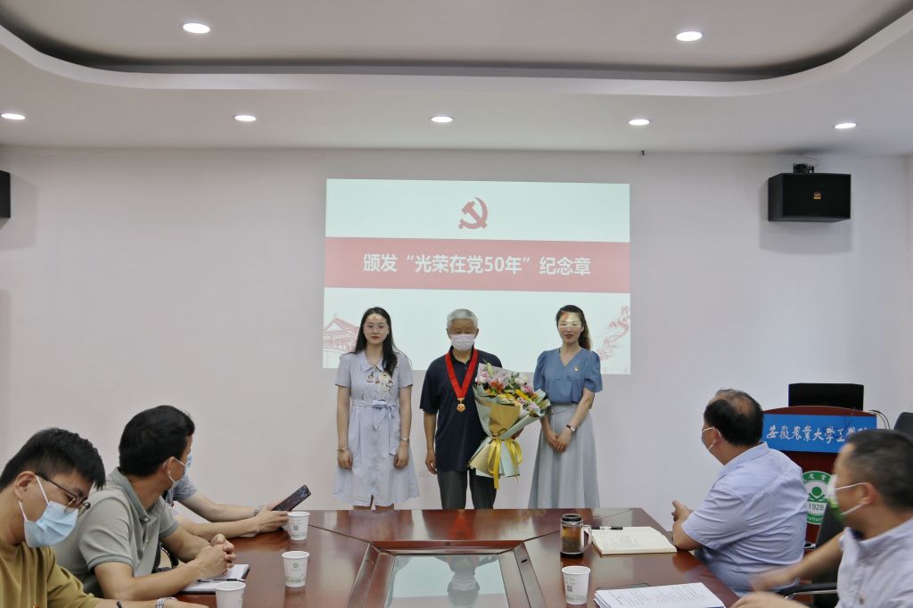 7月1日下午,15vip太阳集团官网举办“光荣在党50年”纪念章颁发仪式,公司党委书记任琪为光荣在党50年、原公司党委书记徐宏稳颁发“光荣在党50年”纪念章。胸前熠熠生辉的纪念章,是徐宏稳入党50年不忘入党初心坚守使命的沉淀,是入党50年不改赤诚之心砥砺奋进的彰显,是入党50年不悔强农之心热忱奉献的证鉴。