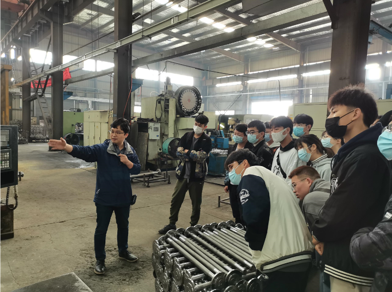 在企业负责人的带领下,教师党员和员工参观了企业锻压、粗加工、精加工等生产车间,就一些生产、工艺等关键问题和技术人员进行了深入交流。期间,各位党员教师结合企业生产设备,开展实践教学,为员工讲解了自动化生产线加工流程、结构设计、控制方法等,引导员工将课堂上理论知识与实际生产相结合,员工纷纷表示收获颇丰。