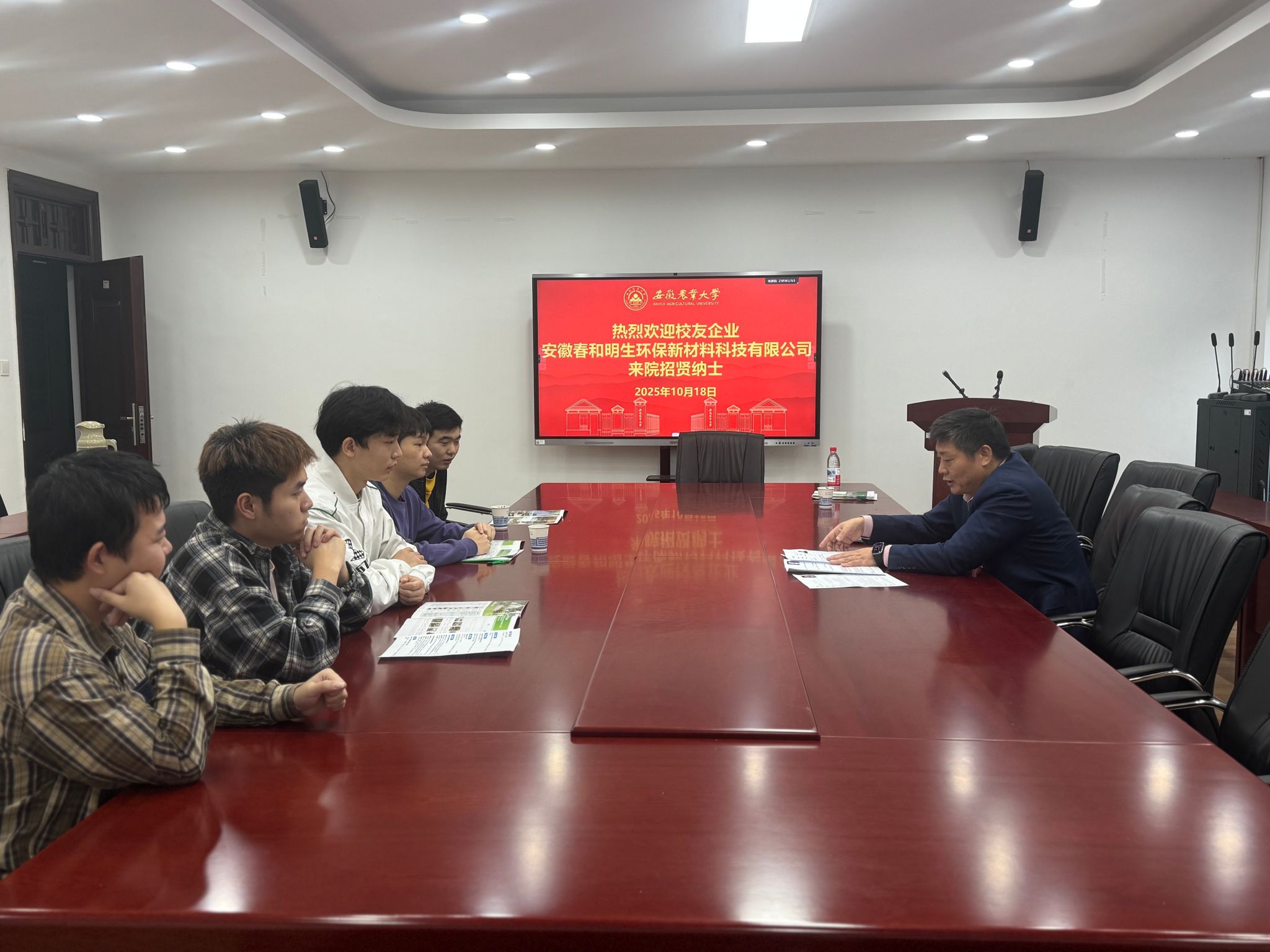 1995届农业机械化员工、安徽春和明生环保新材料科技有限公司董事长李洪道在会前面向学院毕业班员工举办了专场招聘宣讲。会后,员工们共同参观了校史馆,重温母校发展历程与成就。