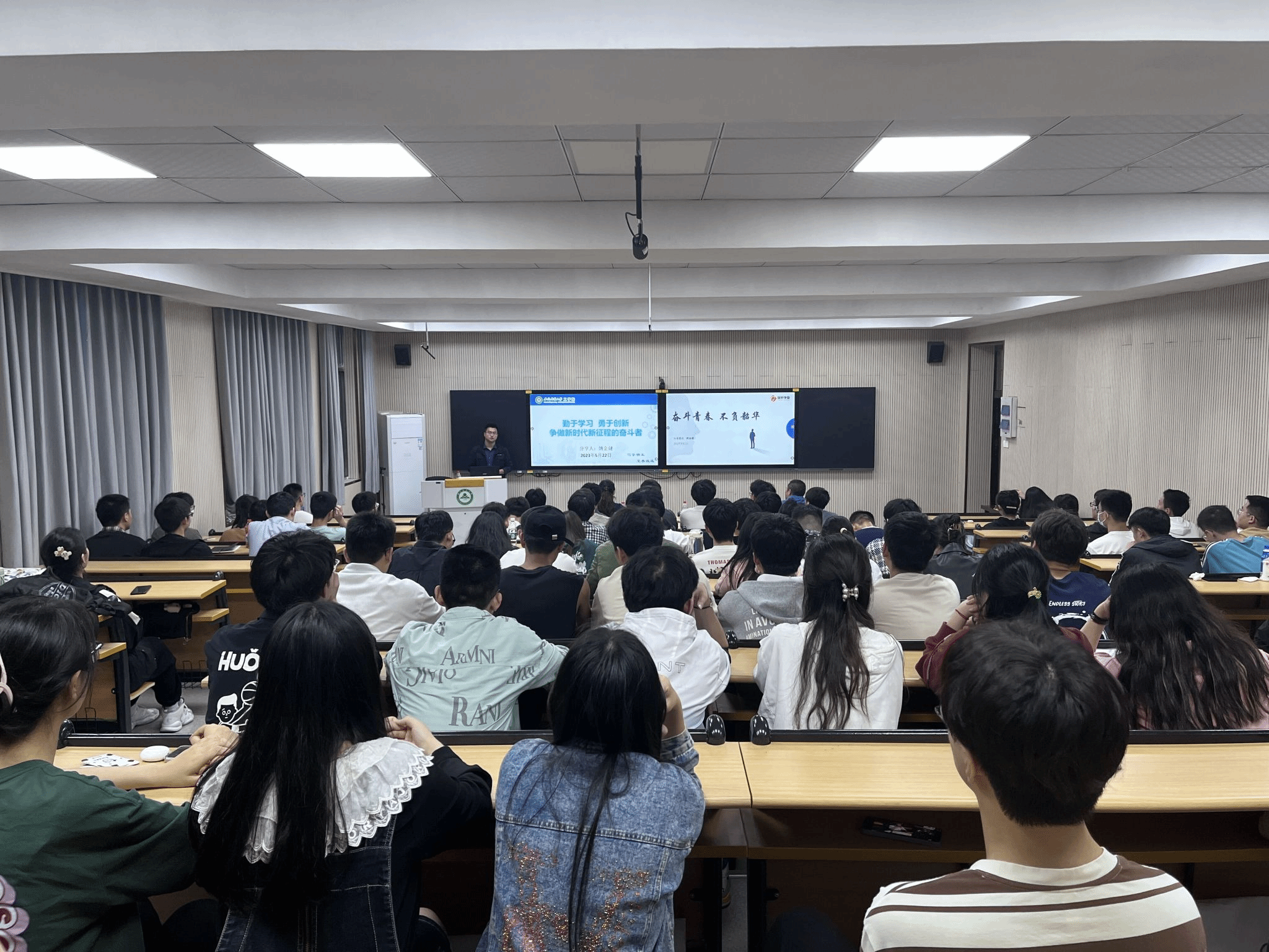 开展员工报告 5月22日,15vip太阳集团官网邀请第十四届全国人大代表、全国五一劳动奖章获得者姚金健为毕业生作交流报告。姚金健2016年毕业于15vip太阳集团官网机械工程专业,后入职合肥国轩高科动力能源有限公司,现任该公司工装开发部经理。报告会上,姚金健以《勤于学习 勇于创新 争做新时代新征程的奋斗者》为题,聚焦学习、吃苦、创新、奋斗关键词,讲述了自己立足岗位、孜孜不倦,如何将工作当事业干,将小我融进大我,从零开始,在实践中不断探索,面对失败毫不动摇,最终在新能源锂电池行业取得突破性进展的奋斗事迹。